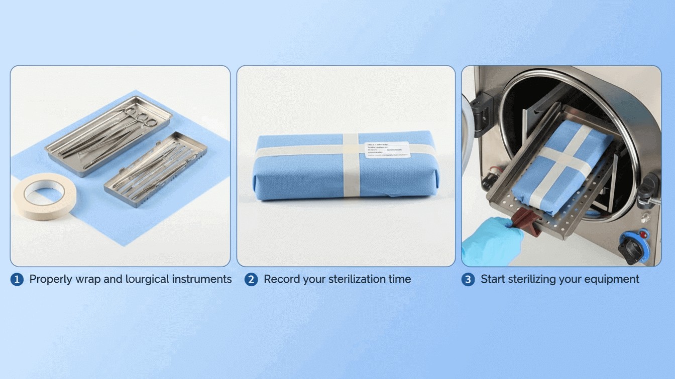 Clean and dry the medical instruments or materials to be sterilized. Package them using sterilization pouches, wraps, or containers suitable for steam autoclave use.