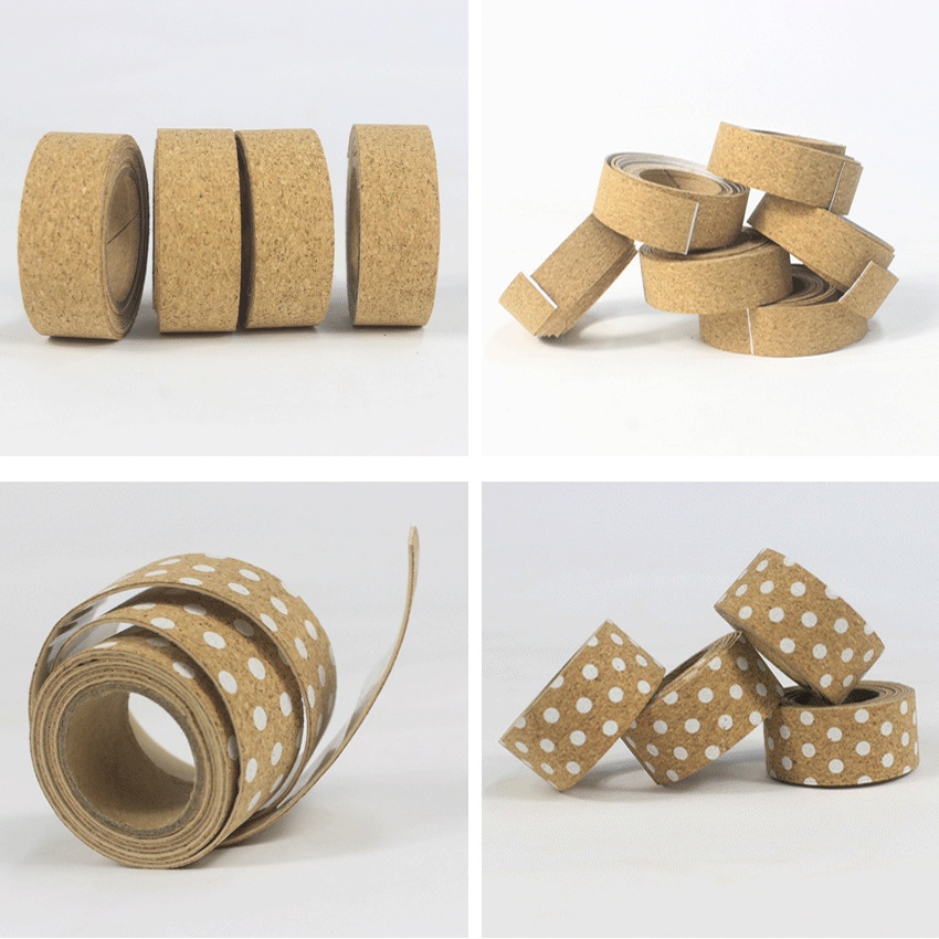 Cork tape is made of high-quality cork as the base material, unique craftsmanship, imported pressure-sensitive adhesive, and is coated. It meets EU environmental standards, has moderate viscosity, and a smooth end surface.