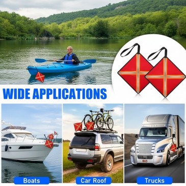 This is a Marine Reflective Warning Flag, made of waterproof oxford fabric, equipped with high-brightness reflective strips and hanging webbing. It is designed for vehicles, trailers, outdoor operations and other scenarios to improve visibility and ensure travel and work safety.